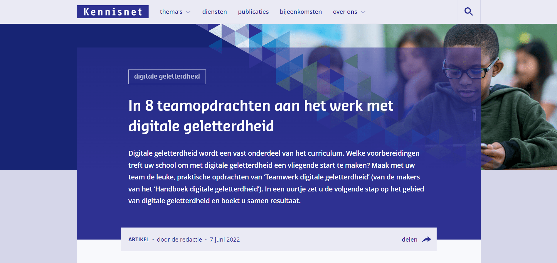 Ga in acht stappen met je school aan het werk met digitale geletterdheid. In het masterplan basisvaardigheden van minister Wiersma is het starten met digitale geletterdheid opgenomen. Hoe geef je hier nou handen en voeten aan? Kennisnet heeft acht praktische stappen en opdrachten beschreven om te komen tot een kansrijk en praktisch beleid.